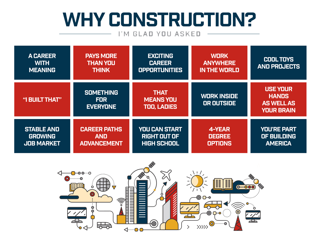 The growth of our nation’s infrastructure relies on young people and their families viewing construction as an honorable, safe, and rewarding career. Get involved today to help us change the way we build our future workforce!